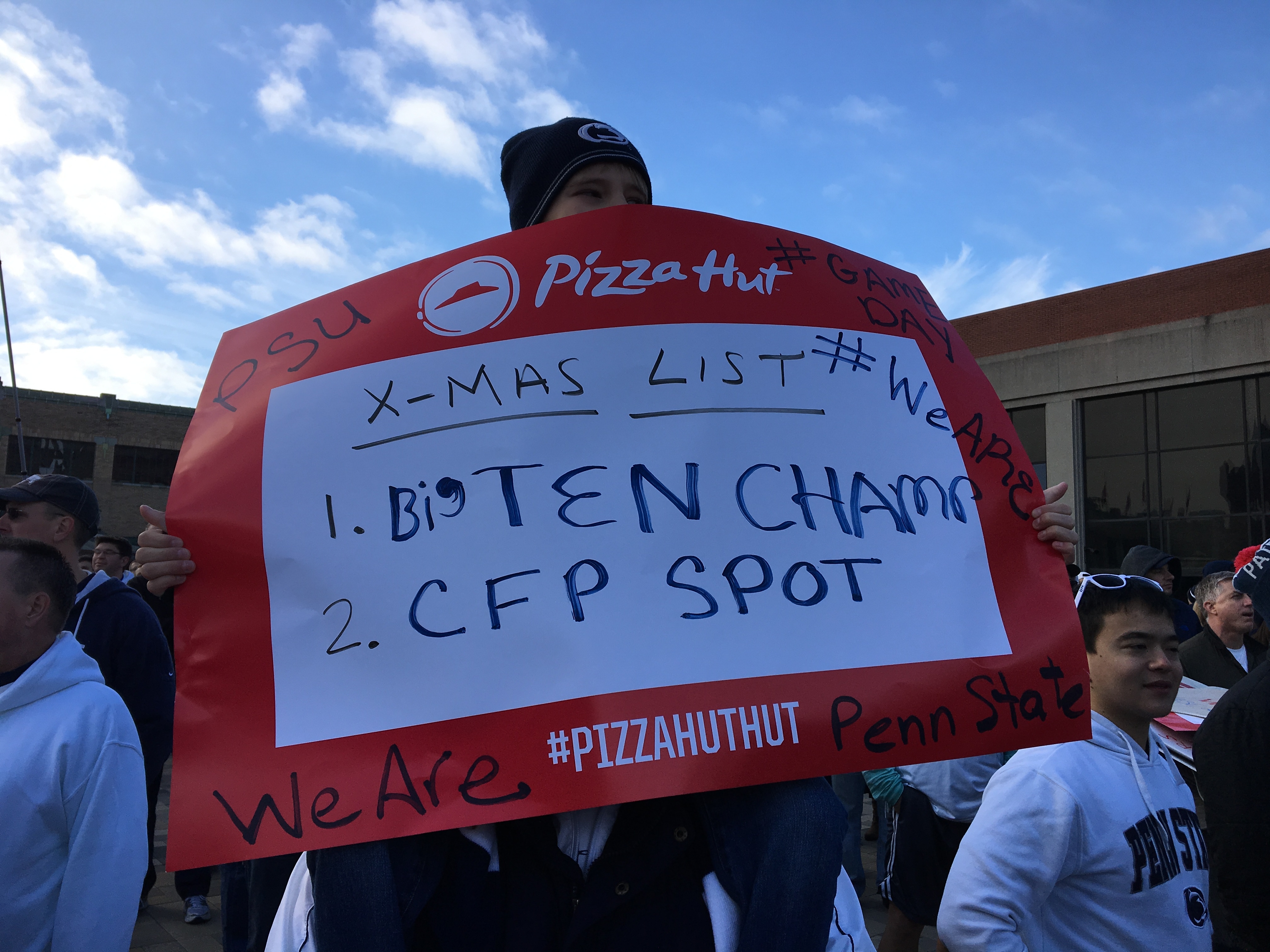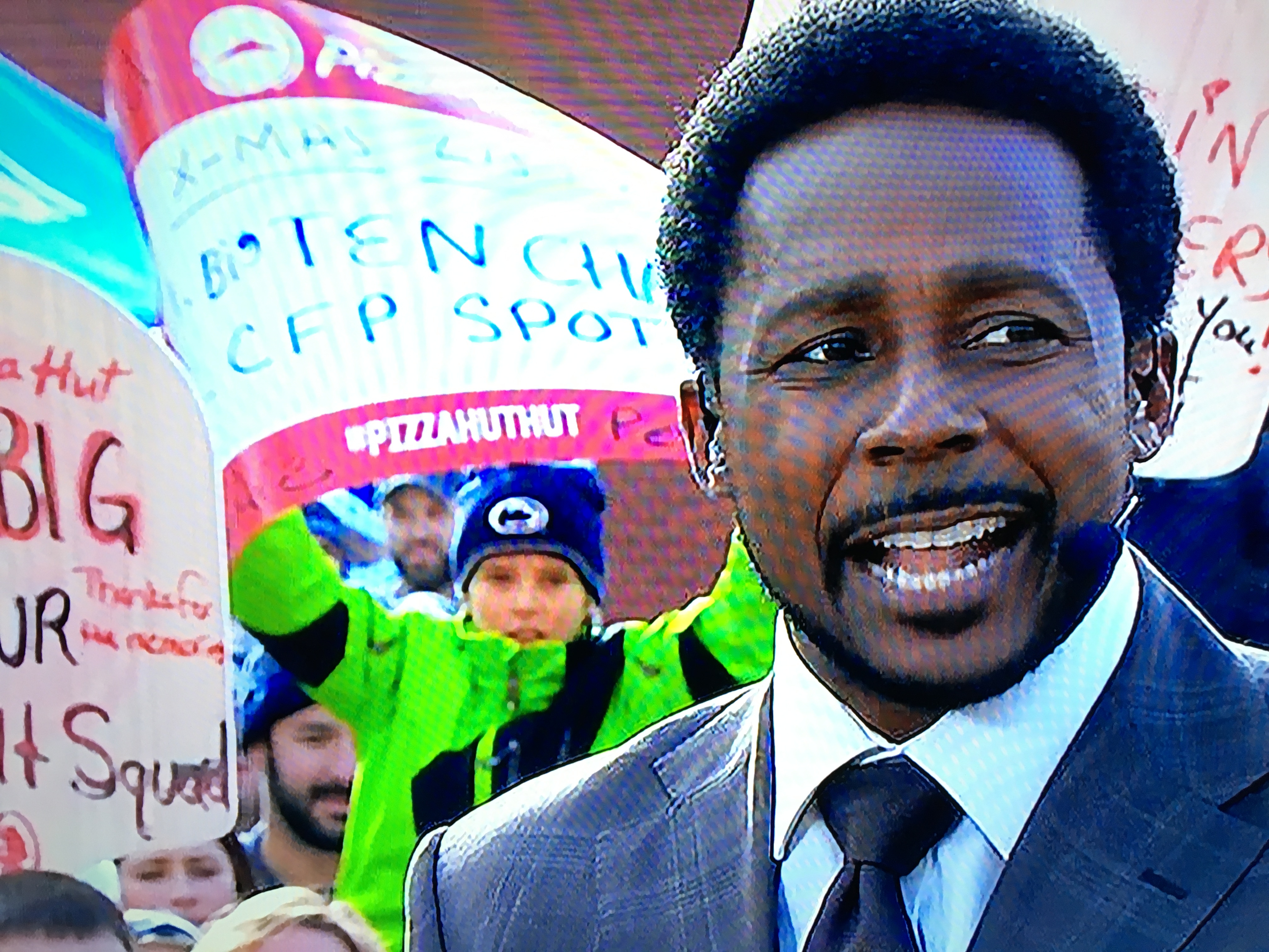 My dad purchased a hat for my son, which they filled with autographs of Penn State greats like Jack Ham and Kijana Carter. To my dad’s chagrin, he added the signature of Desmond Howard at the game because, well…he was on Gameday in Indy behind Dez’s head, so he feels a connection to the Heisman great. Someday I’m sure they will discuss how my son devalued the hat and even Desmond Howard himself seemed shocked by the request.