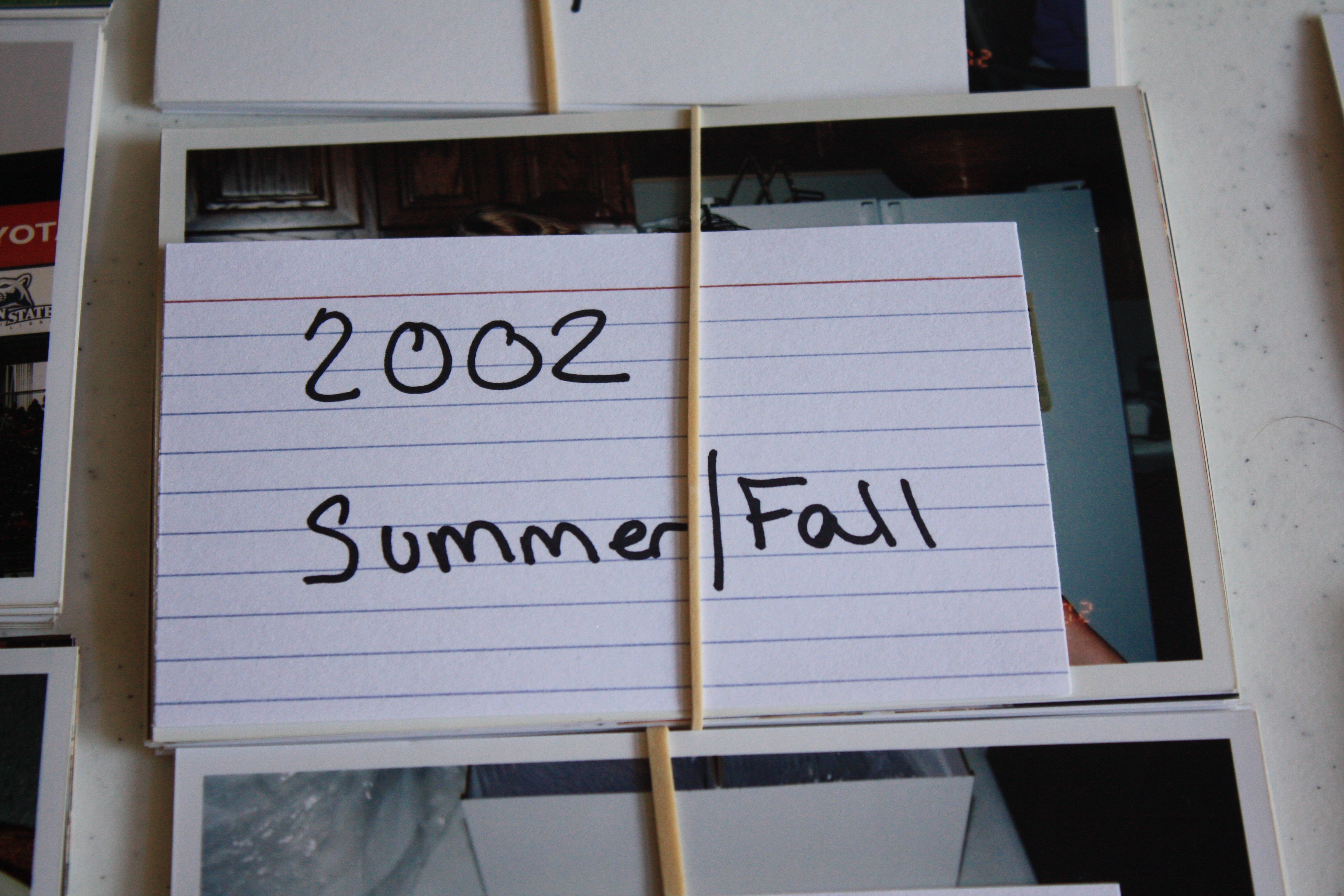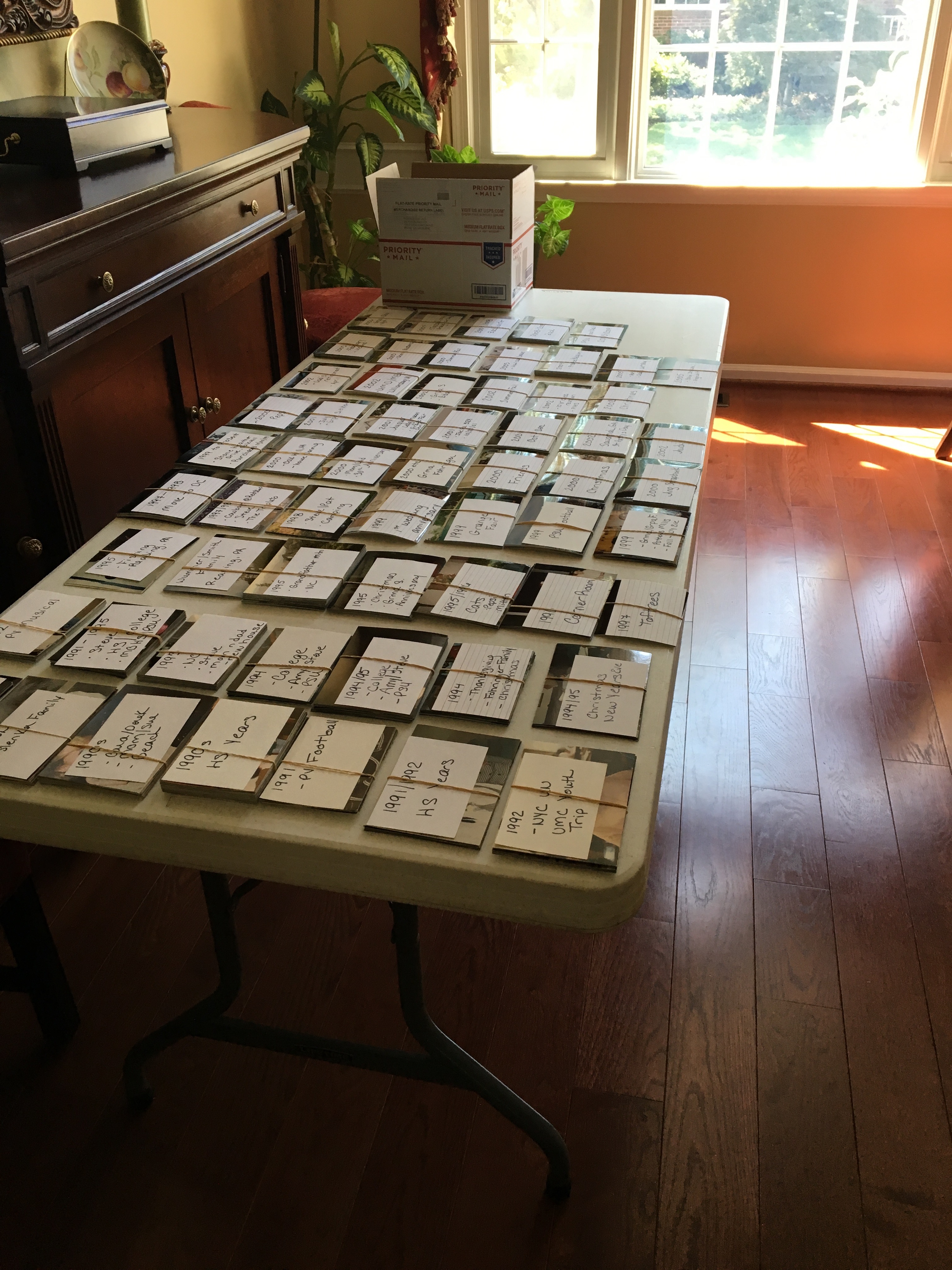 Wedding/May 1999. Get rid of more photos with each sort. Throw away duplicates, extra scenery, blurry photos, and unknown people. Be brutal about keeping only the best of the best. Don’t let paper clutter become digital clutter. Then, use index cards and rubber bands to organize and label each event. - Batch scan – Scan the saved photos to your computer or use a scanning service to do it for you. Use the labels on the index cards to create a meaningful naming convention for the files to your computer. (1999_05_Wedding)