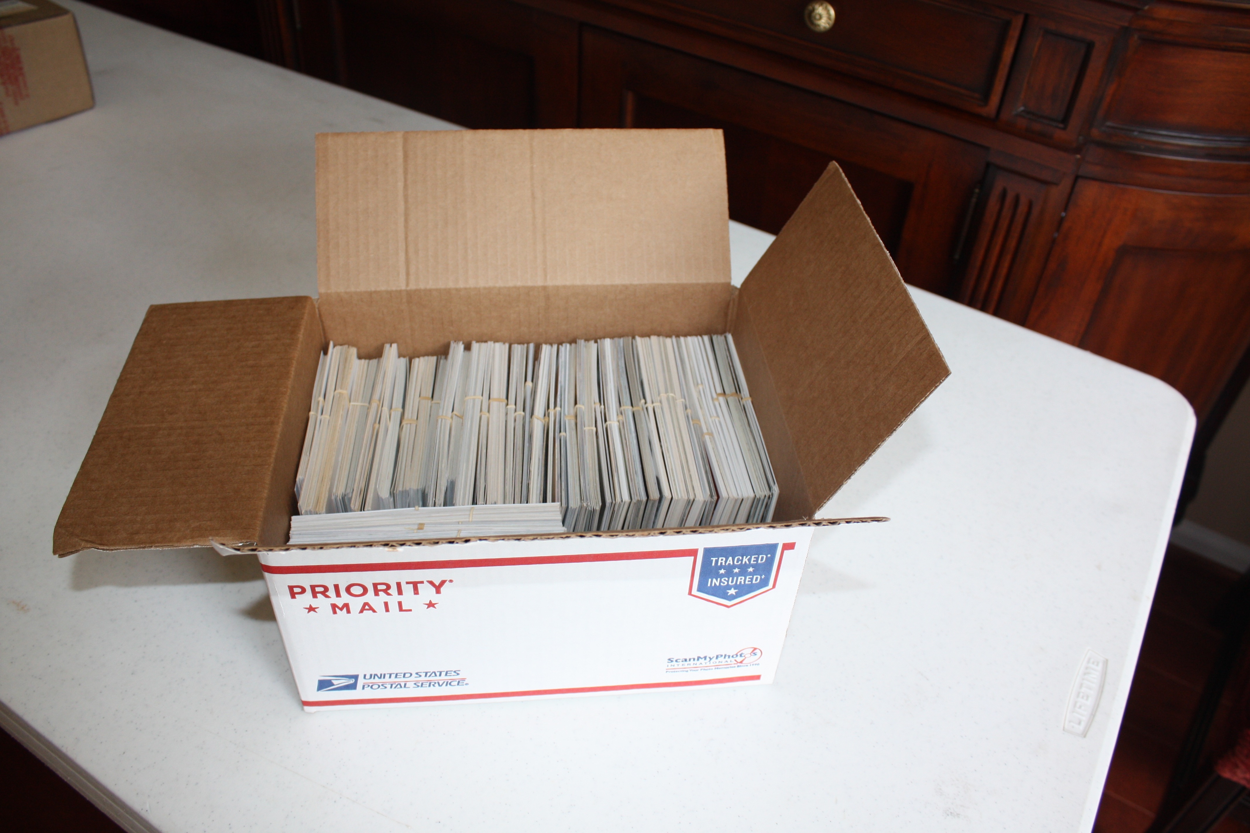 - If you prefer, use a Scanning Service such as Scan My Photos. I love this service. With my box of 1,800 photos, I had a great experience! I opted for “Scan in Order” which was well worth the additional cost to maintain the labels I created.